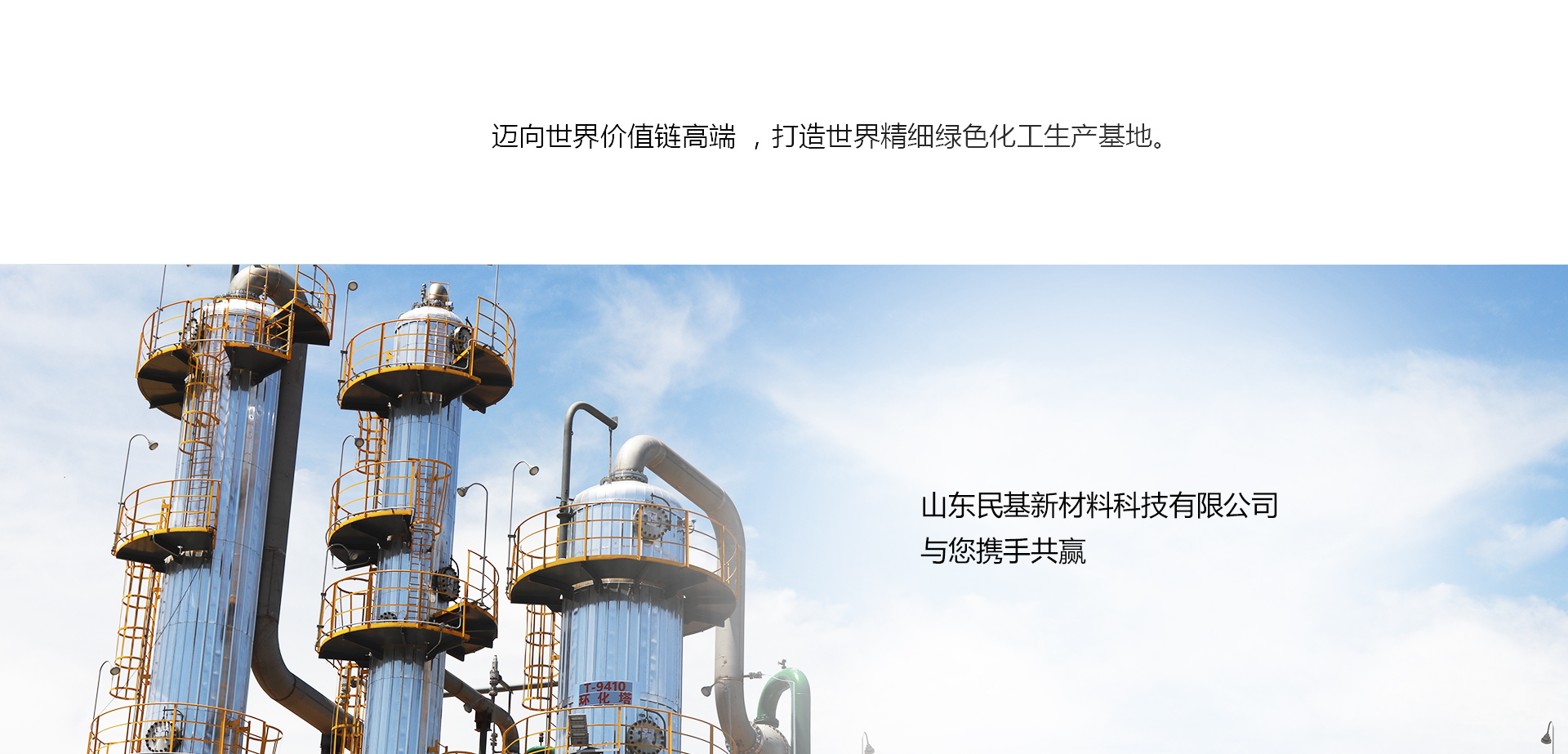 山東民基新材料科技有限公司成立于2008年5月,占地面積20萬平方米,注冊資本1.1億元,是山東省高新技術(shù)企業(yè)、山東省雙體系標(biāo)桿企業(yè)、山東省氯乙酸行業(yè)安全操作規(guī)程起草單位、山東省瞪羚企業(yè)、山東省“專精特新”中小企業(yè)、山東省“中小企業(yè)隱形冠軍”,獲山東省“富民興魯勞動獎狀”、“振興淄博勞動獎狀”、“淄博市勞動關(guān)系和諧企業(yè)”、“淄博市示范誠信企業(yè)”等榮譽20余項。擁有省級和市級“一企一技術(shù)”研發(fā)中心、淄博市工程研究中心,已申報、擁有專利30余項。 公司主要產(chǎn)品:氯乙酸、環(huán)氧氯丙烷、三甲基乙酸、三甲基乙酰氯、氯代特戊酰氯、濃硫酸、發(fā)煙硫酸、液體二氧化硫等,組成了“氯乙酸—環(huán)氧氯丙烷”、“三甲基乙酸—三甲基乙酰氯—氯代特戊酰氯”兩條綠色循環(huán)產(chǎn)品鏈,其中氯乙酸單套裝置產(chǎn)能全球第一。產(chǎn)品廣泛用于醫(yī)藥、農(nóng)藥、染料、膠粘劑等行業(yè),深受國內(nèi)外市場青睞。公司擁有自營出口權(quán),通過了三體系認(rèn)證,獲頒歐盟3A信用評估證書、國內(nèi)3A級信用企業(yè)證書。 建基筑業(yè)十余年,公司始終踐行“創(chuàng)新驅(qū)動、高端智能、高質(zhì)高效、綠色循環(huán)”發(fā)展理念,集中資源,定向發(fā)力,堅守主業(yè),聚焦項目,聚力創(chuàng)新,致力于研發(fā)構(gòu)建“投入-產(chǎn)出-資源循環(huán)利用”的安全環(huán)保綠色制造體系,打造了新舊動能轉(zhuǎn)換的“民基樣板”。